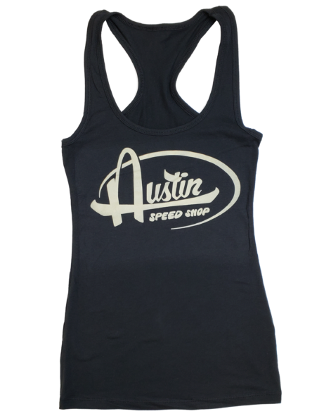 This sexy tank is a super-soft racerback with a deep scoop neck. The logo is adapted from a hand-painted design on our shop van. Unlike 100% cotton, this fabric holds its shape and has a little bit of stretch. Our ladies love wearing this one!