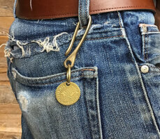 Solid brass belt clip with our All-Star logo stamped on a 1.25 round tag. Uncoated so it will patina beautifully over time.